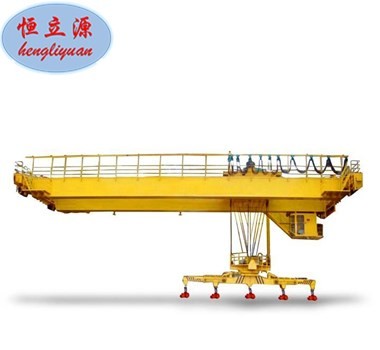 帶有可卸的電磁盤,本機由箱形橋架。大車運行機構(gòu)、小車、電氣設(shè)備、電磁盤五部分組成,全部機構(gòu)均在操縱室內(nèi)操縱,當露天使用時帶有防雨設(shè)備。